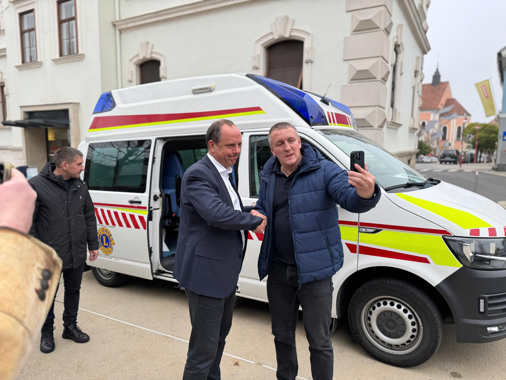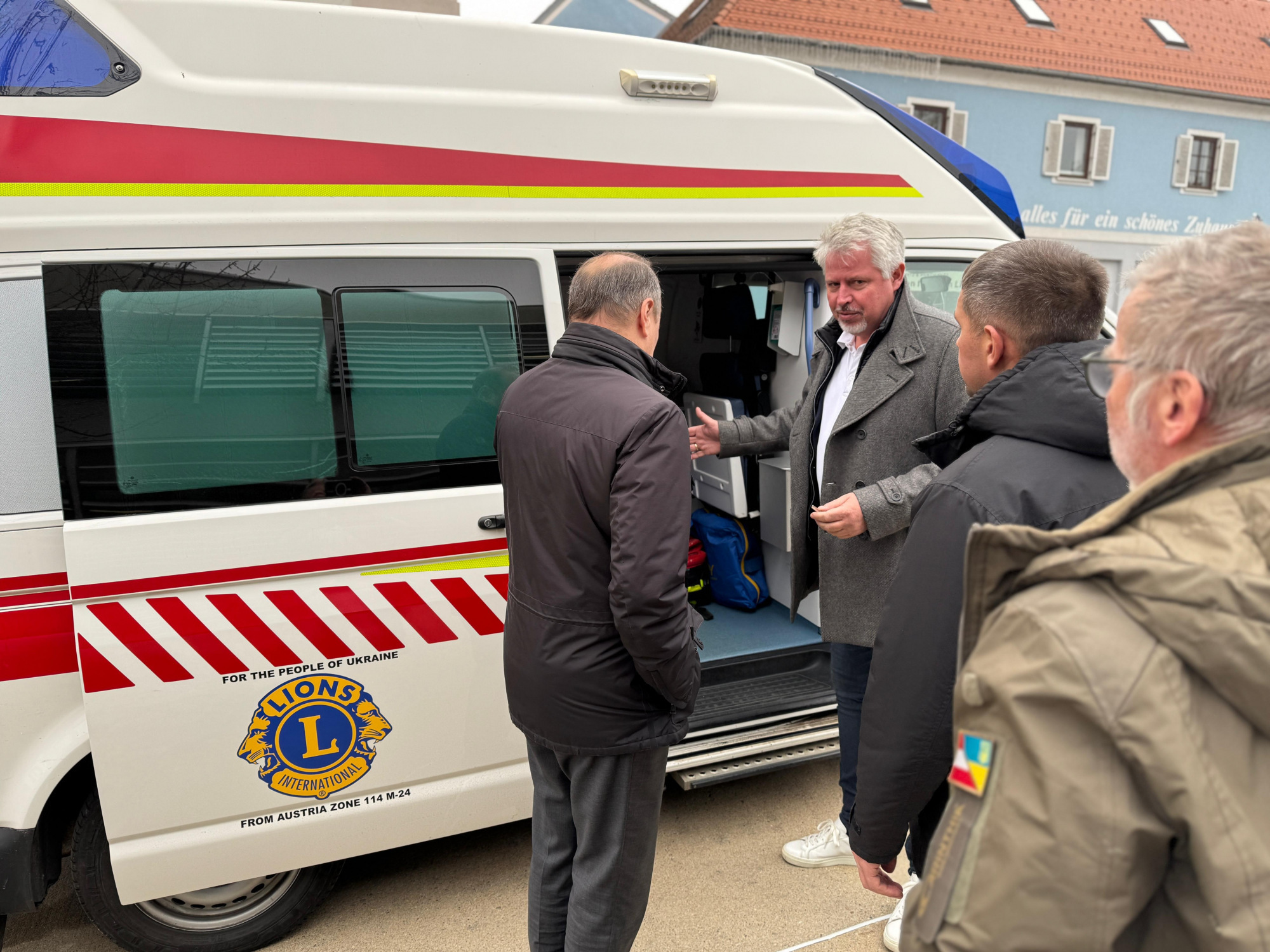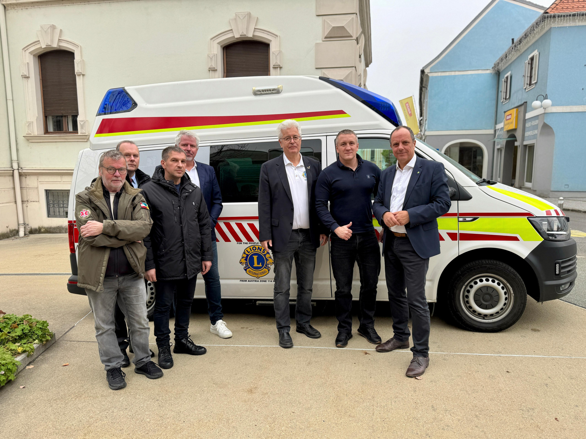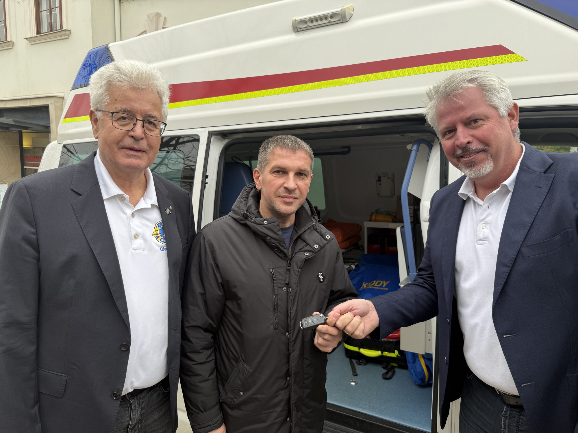 Anlass des Besuchs war die Übergabe eines gebrauchten Rettungsfahrzeuges, das die sieben Lions Clubs der Oststeiermark organisiert haben. Wie wichtig so ein Fahrzeug in einer Situation einer Stadt ist, wo nichts mehr so ist, wie es einmal war, wo die Hälfte der Bevölkerung entweder an der Front, verstorben oder geflüchtet ist, wo Kinder seit Jahren keine Schule mehr besuchen können, darüber konnten wir uns heute ansatzweise ein Bild machen.